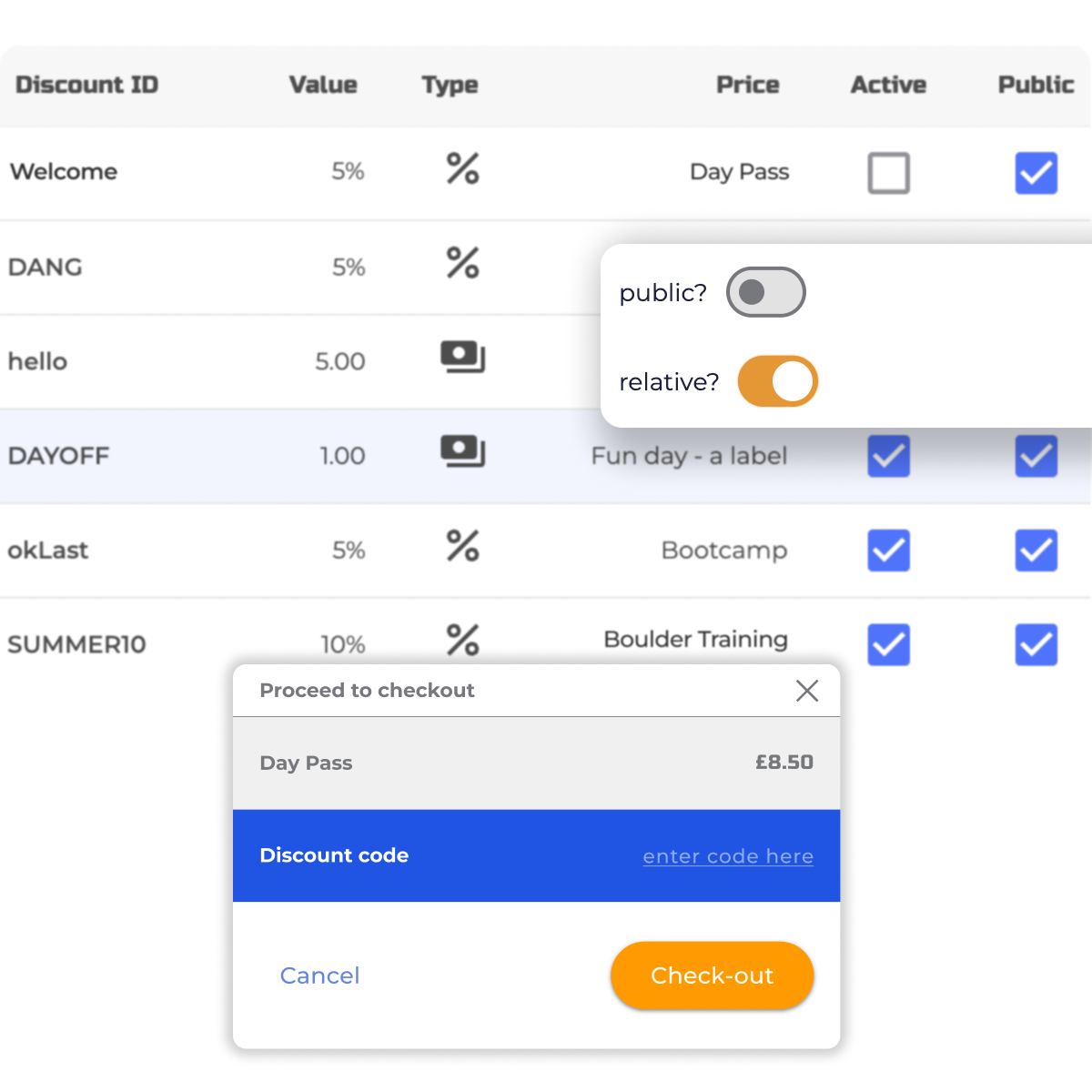 Sell & redeem online and in-facility gift cards. Sell passes and memberships or allow clients to purchase spaces in events all from your website or the BETA app.