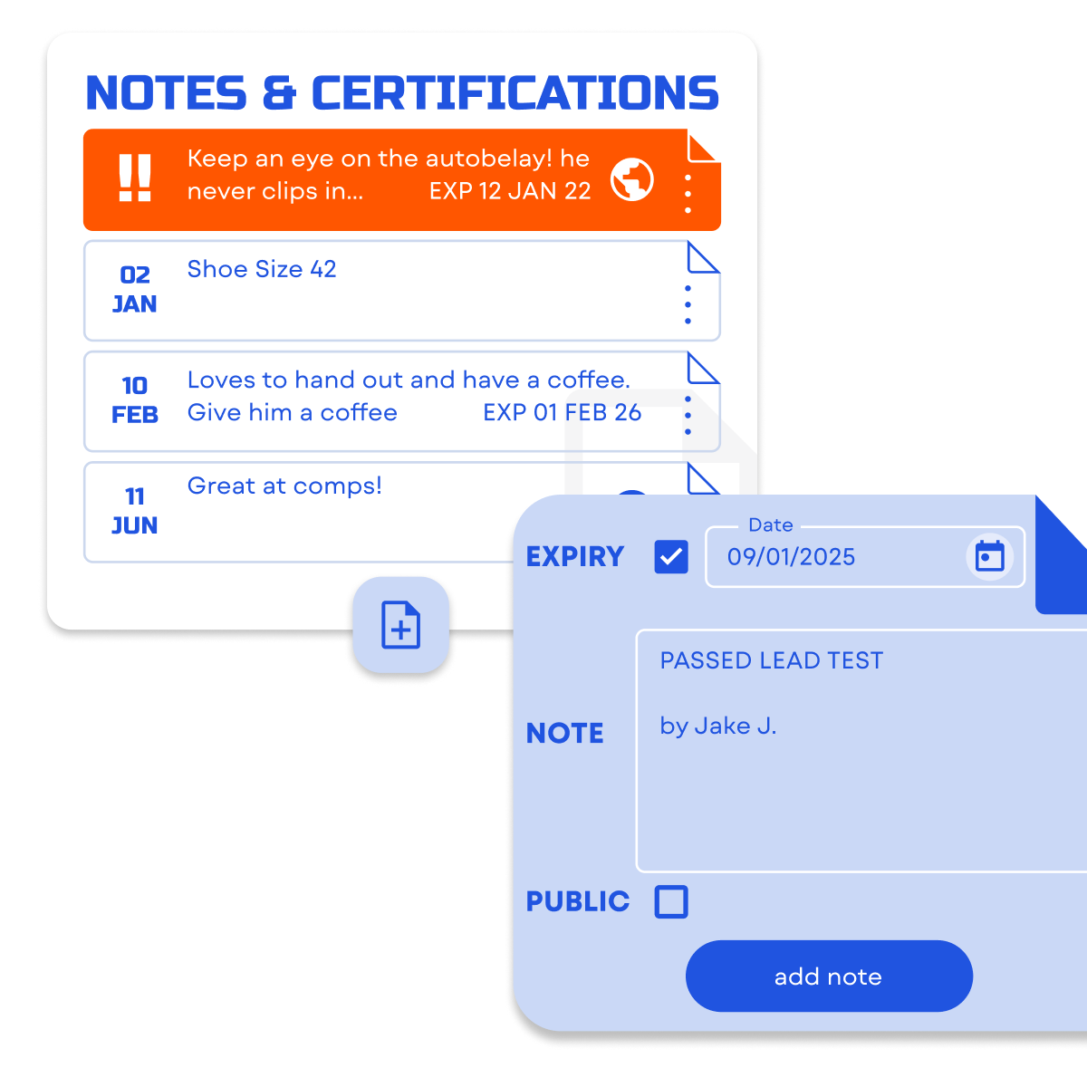 Stay vigilant! BETA's public notes keep climbing gyms in the loop. Tag unusual behavior, share notes across other gyms powered by BETA, and keep our climbing community safe.